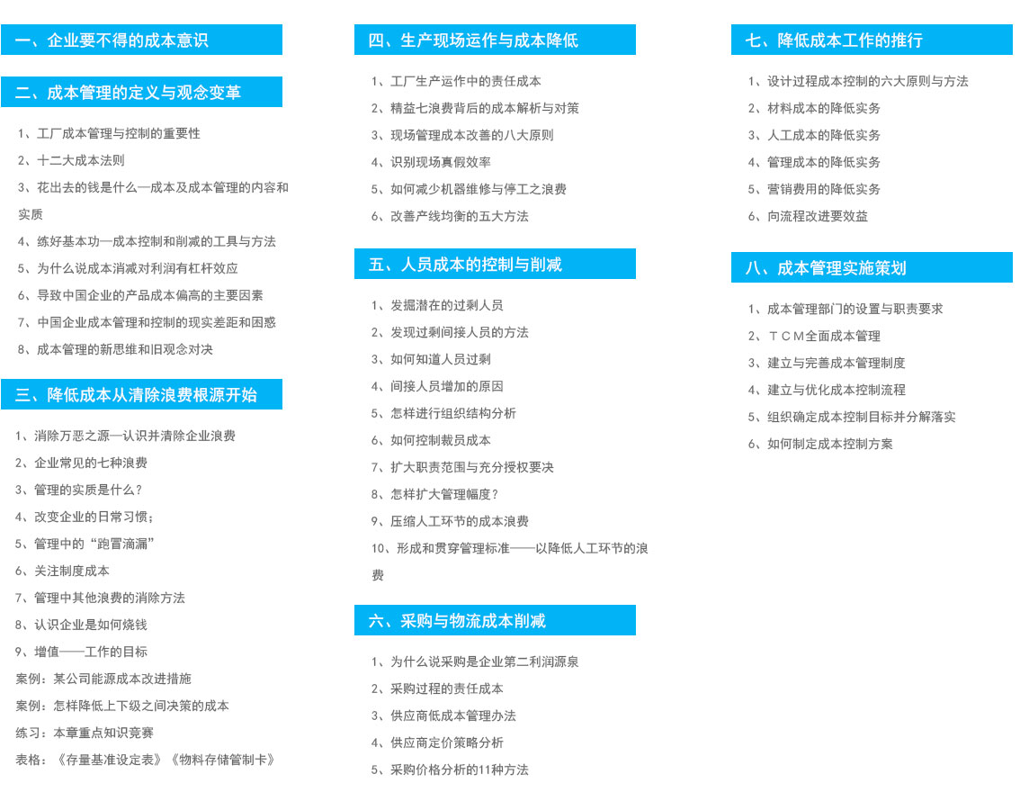 各类制造业总经理、厂长、生产经理、质量经理、采购经理、物流经理及核心生产主管、车间主任、班组长及致力于管控成本的人士
