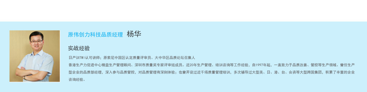 针对以上问题,我们特邀原伟创力科技品质经理杨华老师,与我们一同分享《TCM全面成本控制——追求低成本》的精彩课程。本课程以理论联系实际,归纳大量的管理工具,帮助企业顺应临前的挑战,机遇与风险,通过持续改善和革新现有的生产方式,减少金钱和设备等资源投入,压缩和消减成本,收获更高的有效产出。