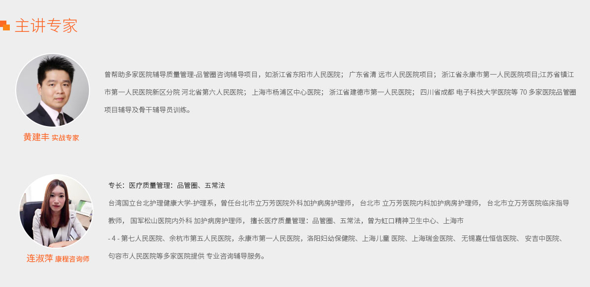 医院质控干部、中层人员,参与医院品管圈活动的圈长、圈员;有兴趣参与医院质量改善 活动的人 |