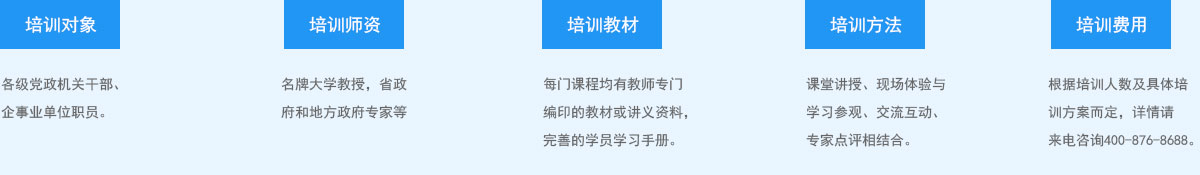 硬件:学校高级研修班专用的多媒体教室、校内各类标准的住宿标间。